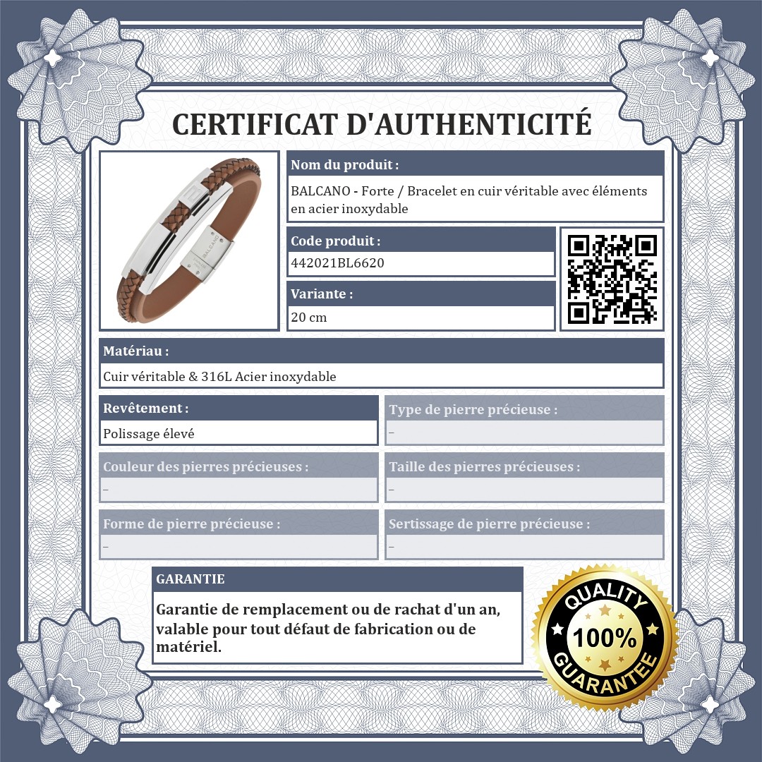 BALCANO - Forte / Bracelet en cuir véritable avec éléments en acier inoxydable
