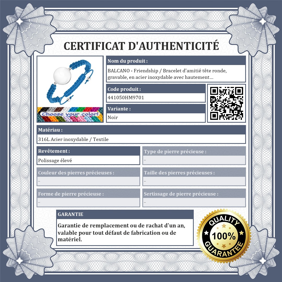 BALCANO - Friendship / Bracelet d'amitié tête ronde, gravable, en acier inoxydable avec hautement polie