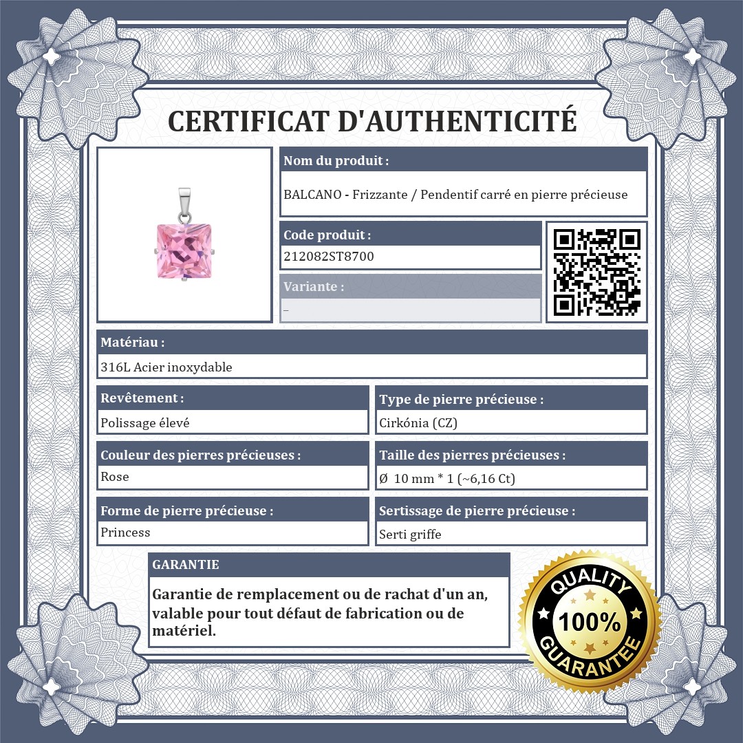 BALCANO - Frizzante / Pendentif carré en pierre précieuse