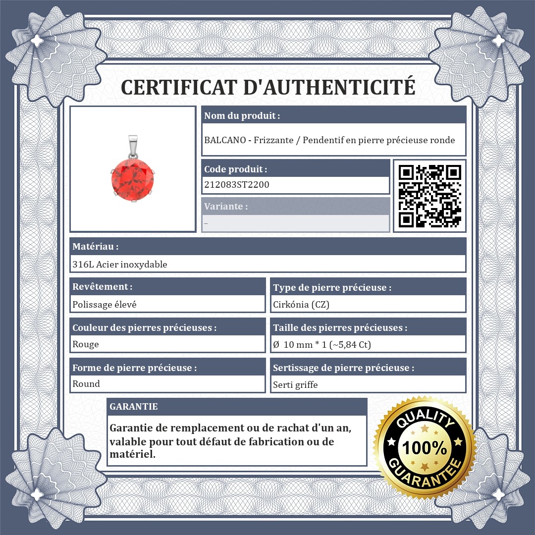 BALCANO - Frizzante / Pendentif en pierre précieuse ronde