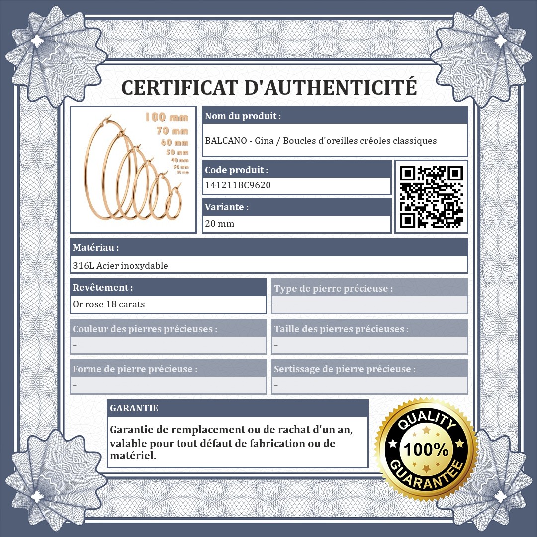 | Type de boucle d'oreille (par forme): | Boucles d'oreilles créoles |