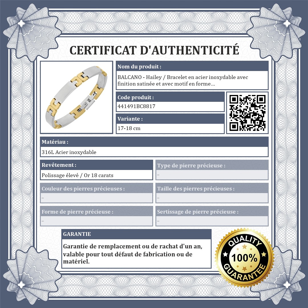 BALCANO - Hailey / Bracelet en acier inoxydable avec finition satinée et avec motif en forme de "H" plaqué or 18K
