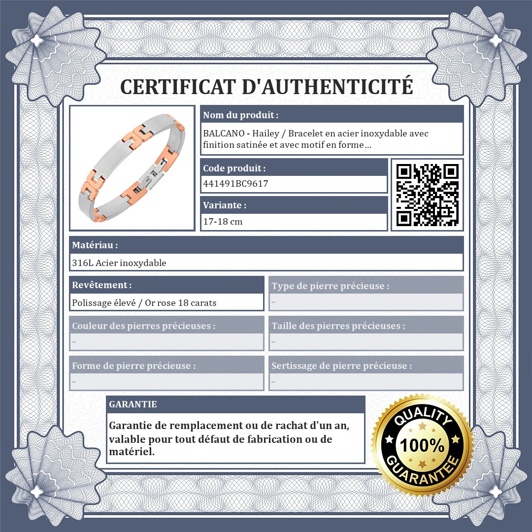 BALCANO - Hailey / Bracelet en acier inoxydable avec finition satinée et avec motif en forme de "H" plaqué or rose 18K
