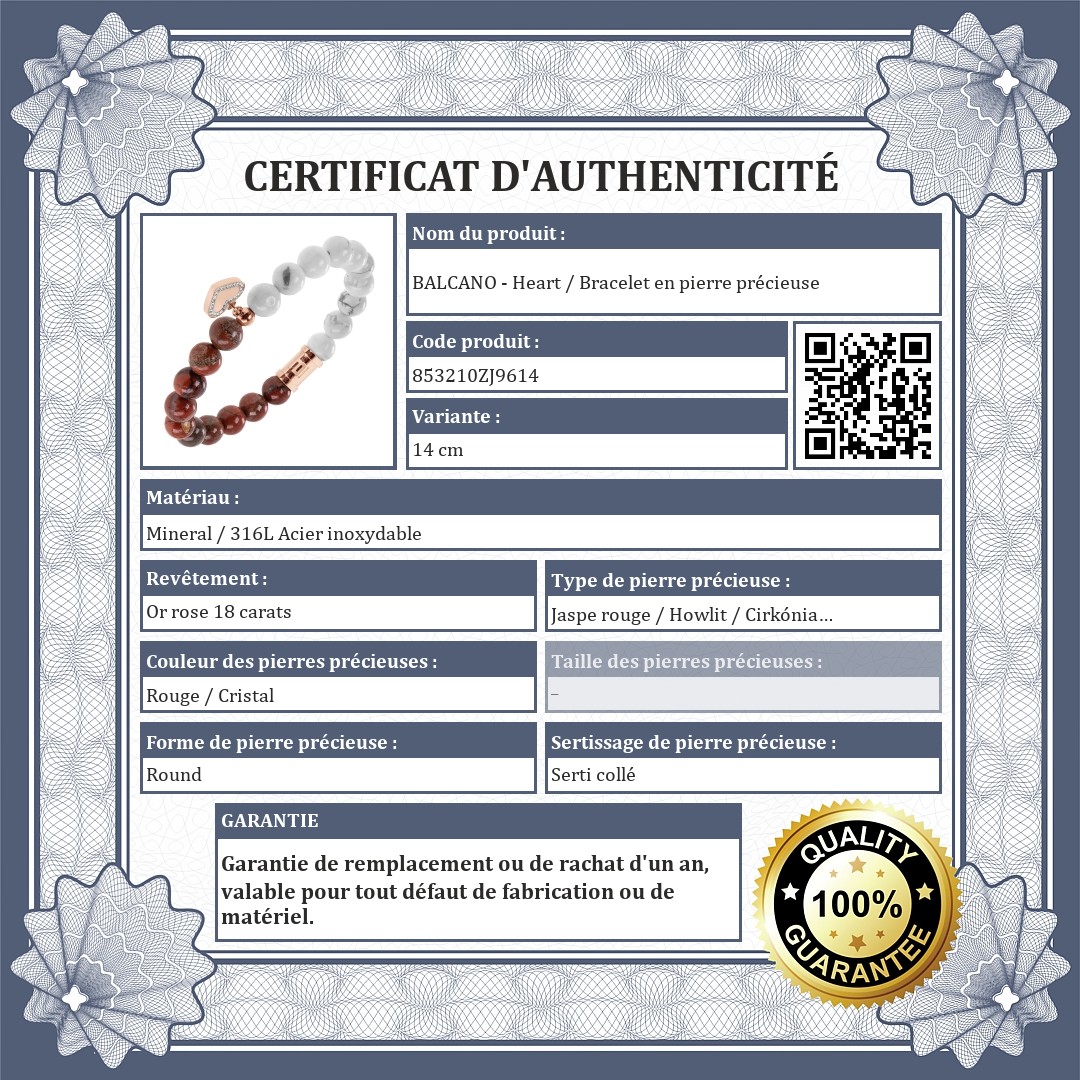 | Type de pierre précieuse: | Cirkónia (CZ) (Zircone cubique) / Jaspe rouge / Howlit |