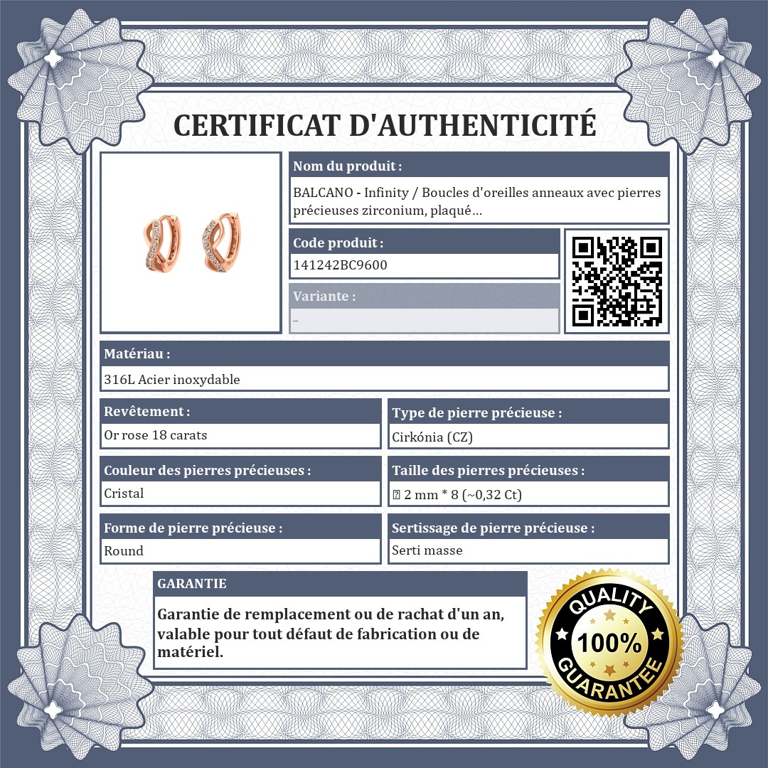 BALCANO - Infinity / Boucles d'oreilles anneaux avec pierres précieuses zirconium, plaqué or rose 18K