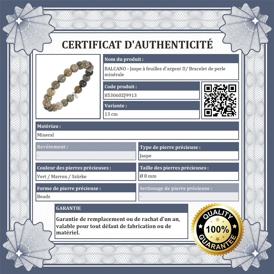 BALCANO - Jaspe à feuilles d'argent / Bracelet de perle minérale