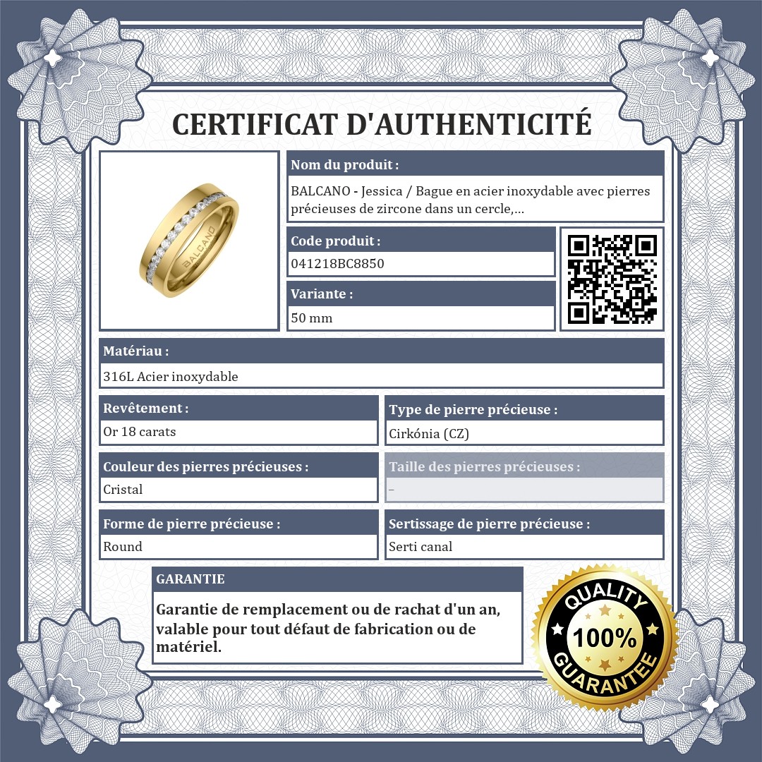 BALCANO - Jessica / Bague en acier inoxydable avec pierres précieuses de zircone dans un cercle, plaqué or 18K