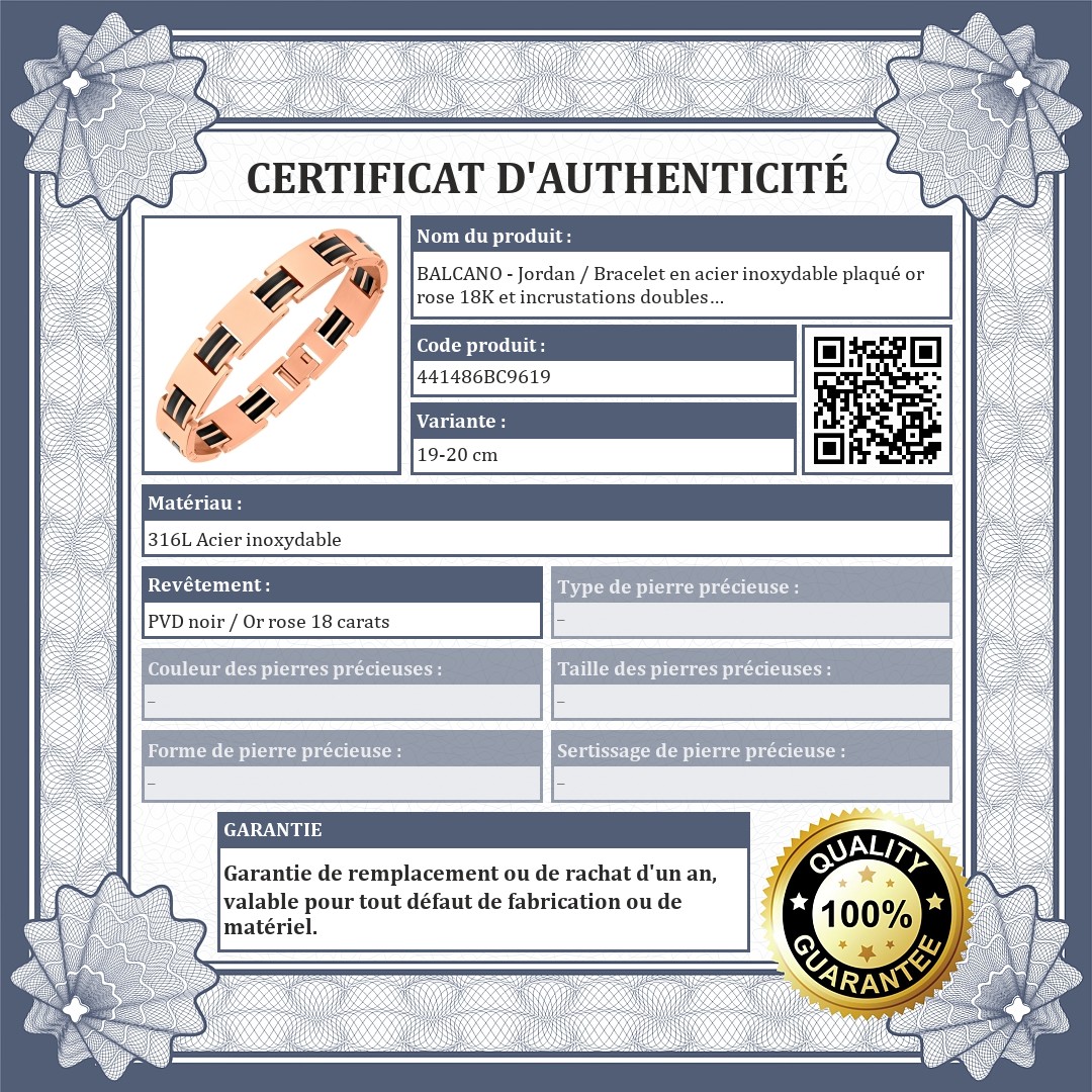 BALCANO - Jordan / Bracelet en acier inoxydable plaqué or rose 18K et incrustations doubles plaqué PVD noir