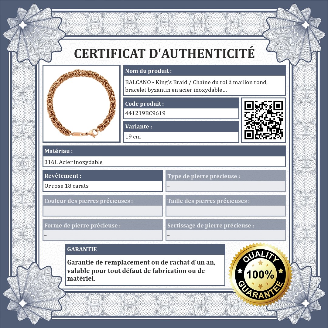 BALCANO - King's Braid / Chaîne du roi à maillon rond, bracelet byzantin en acier inoxydable plaqué or rose 18K - 6 mm