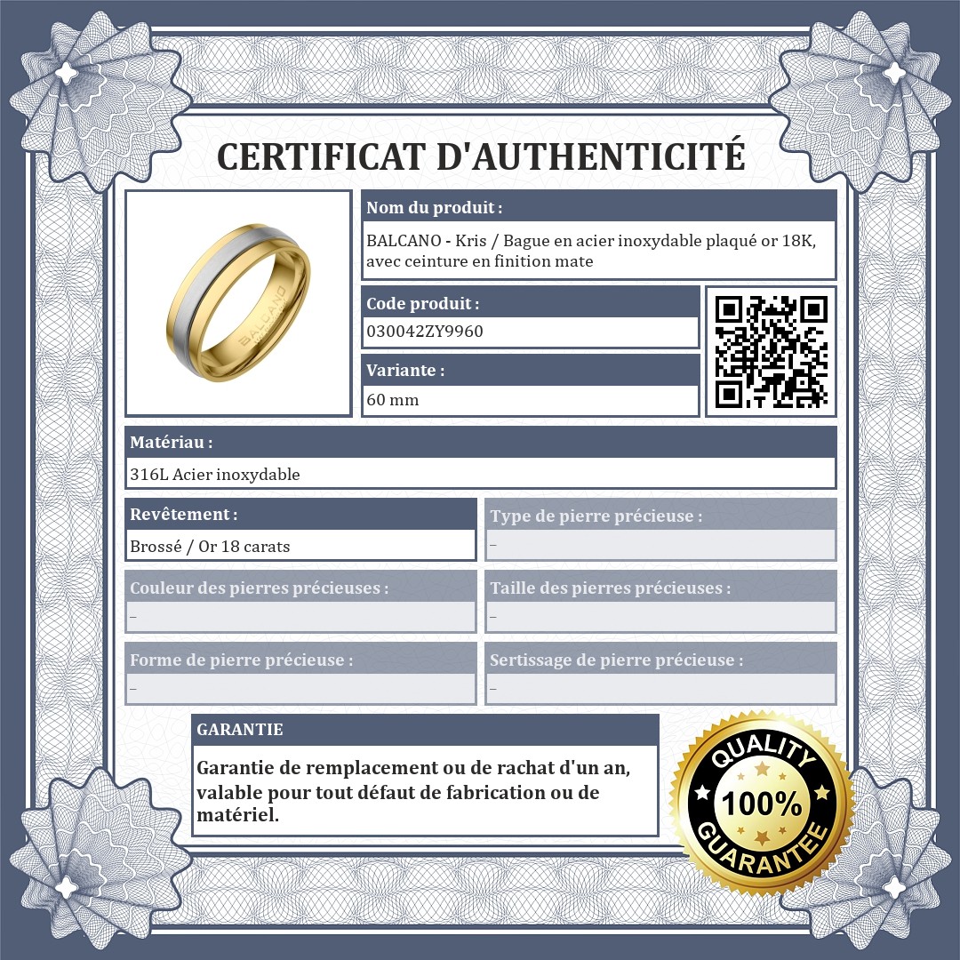 BALCANO - Kris / Bague en acier inoxydable plaqué or 18K, avec ceinture en finition mate