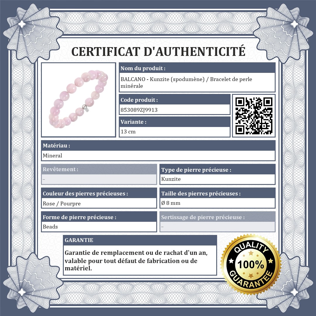BALCANO - Kunzite (spodumène) / Bracelet de perle minérale