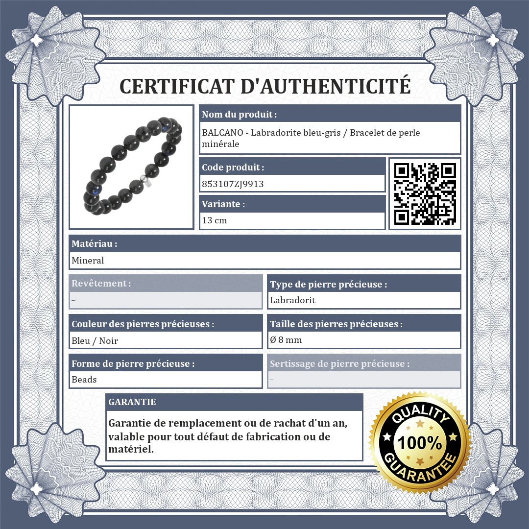 BALCANO - Labradorite bleu-gris / Bracelet de perle minérale