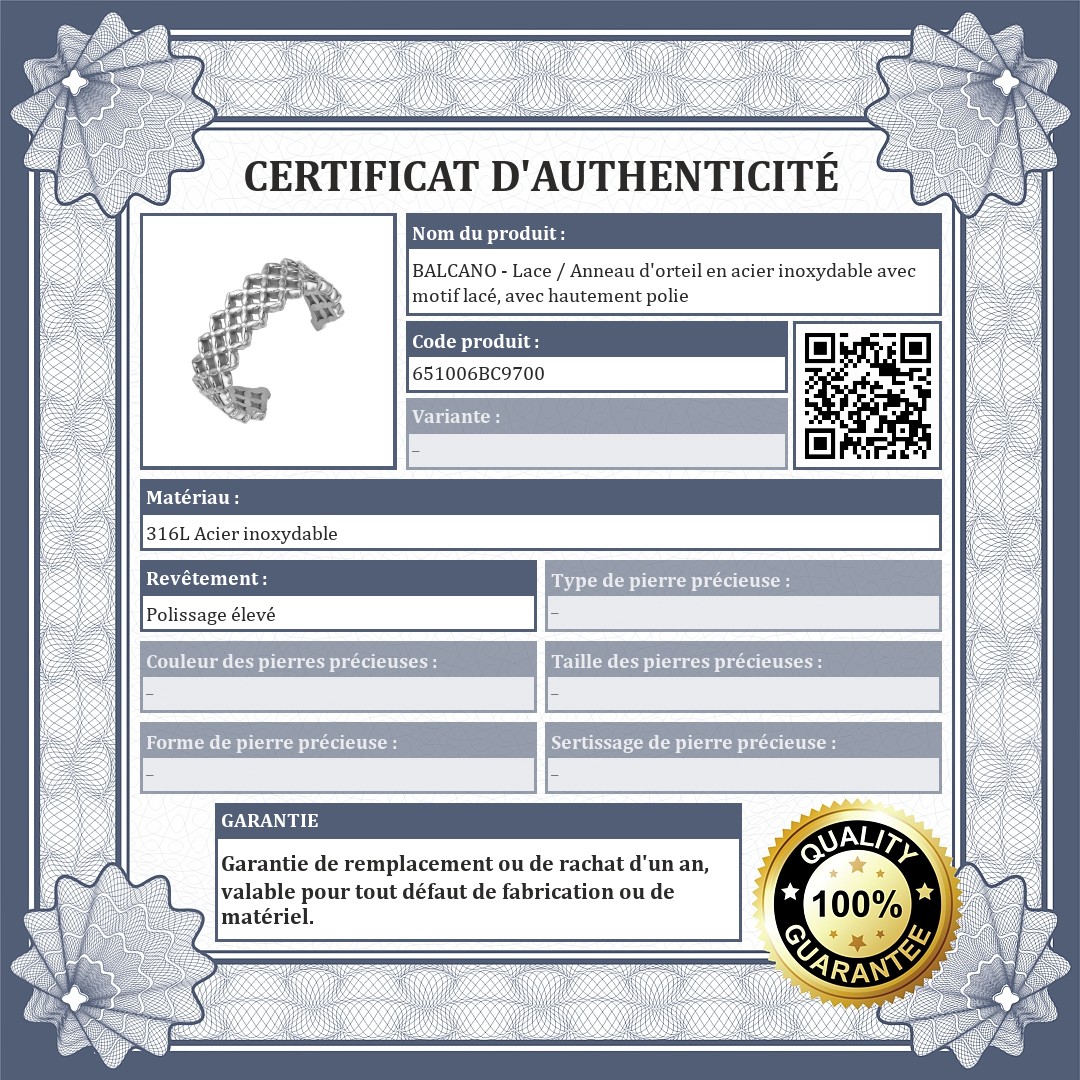 BALCANO - Lace / Anneau d'orteil en acier inoxydable avec motif lacé, avec hautement polie