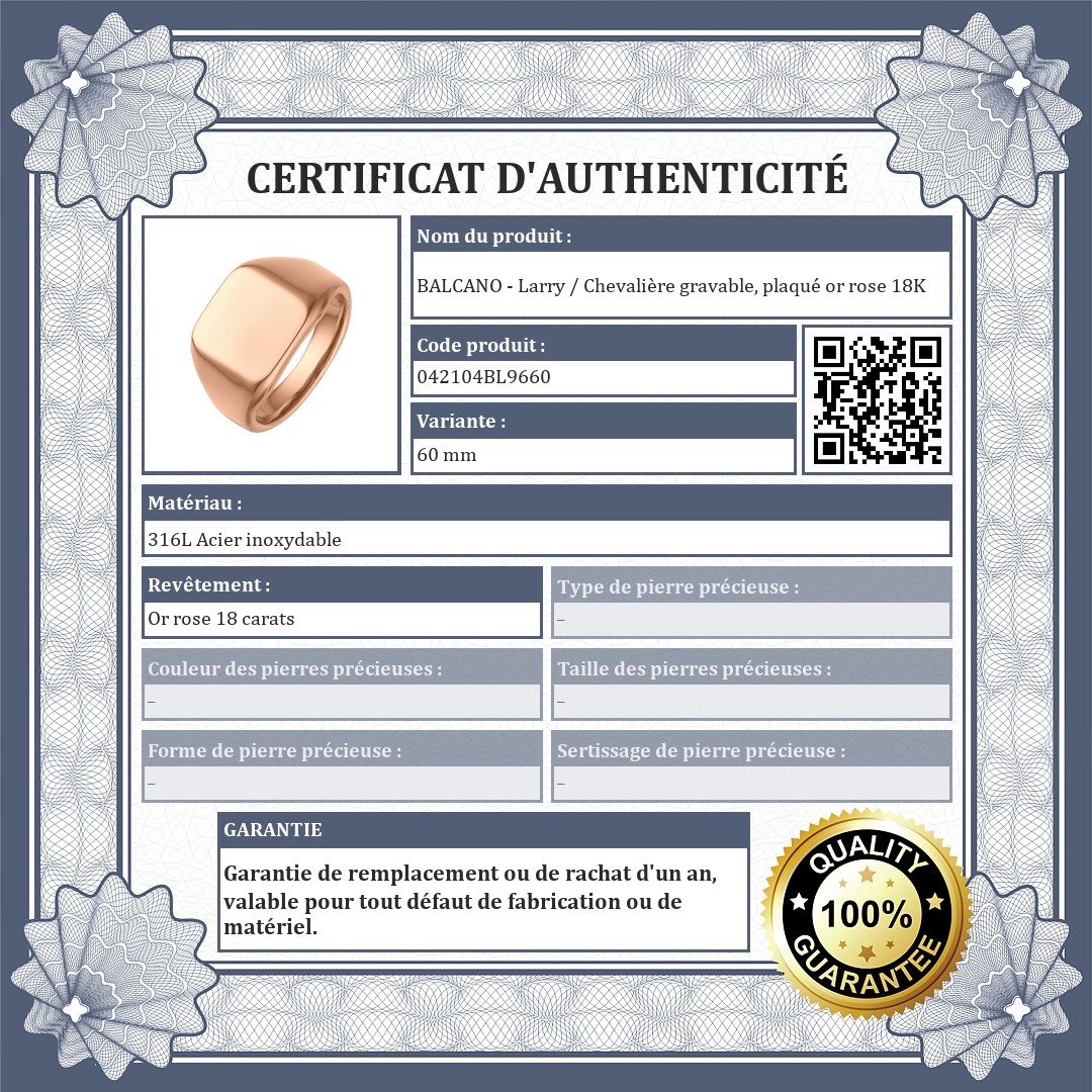 BALCANO - Larry / Chevalière gravable, plaqué or rose 18K