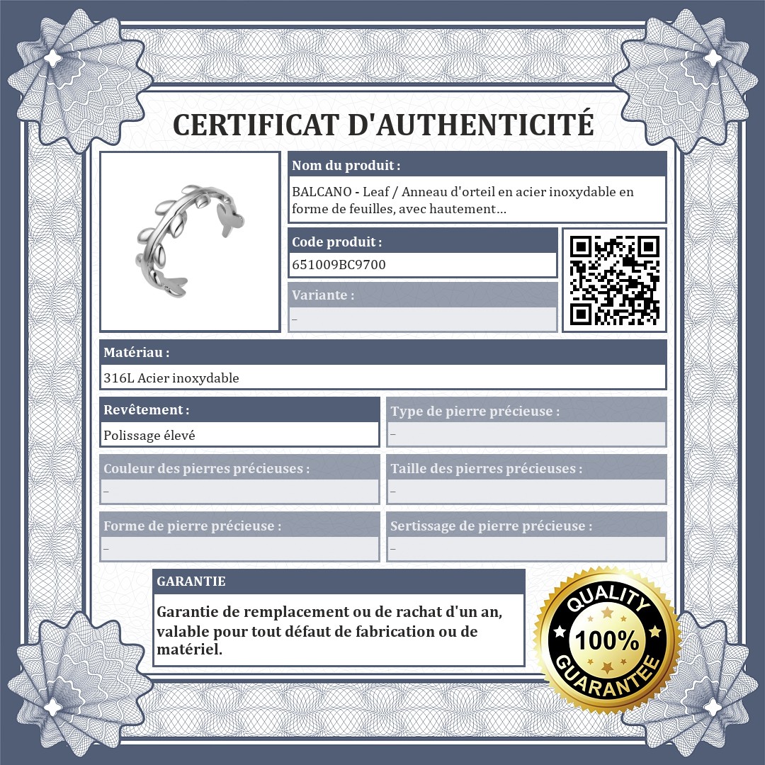 BALCANO - Leaf / Anneau d'orteil en acier inoxydable en forme de feuilles, avec hautement polie