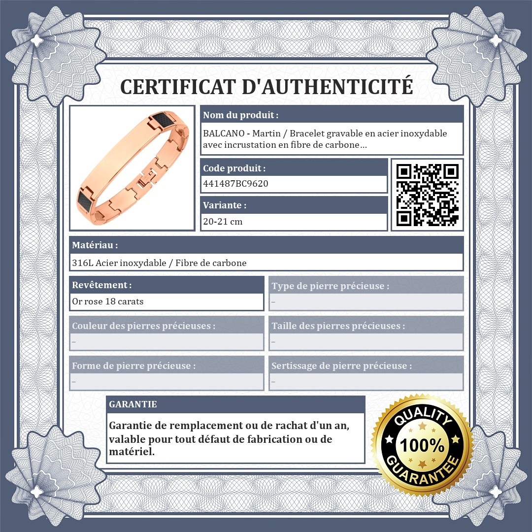 BALCANO - Martin / Bracelet gravable en acier inoxydable avec incrustation en fibre de carbone et plaqué or rose 18K