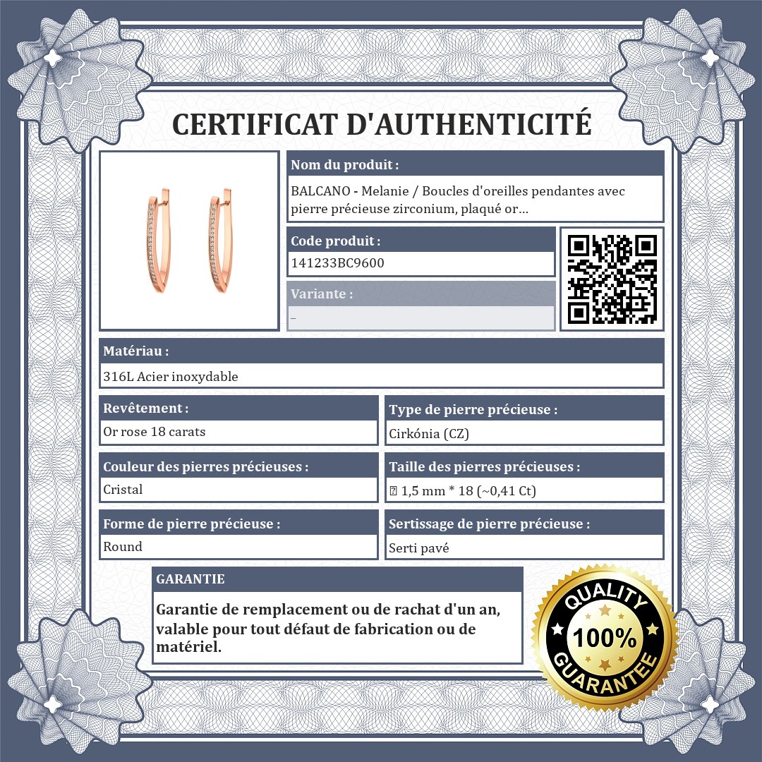 BALCANO - Melanie / Boucles d'oreilles pendantes avec pierre précieuse zirconium, plaqué or rose 18K