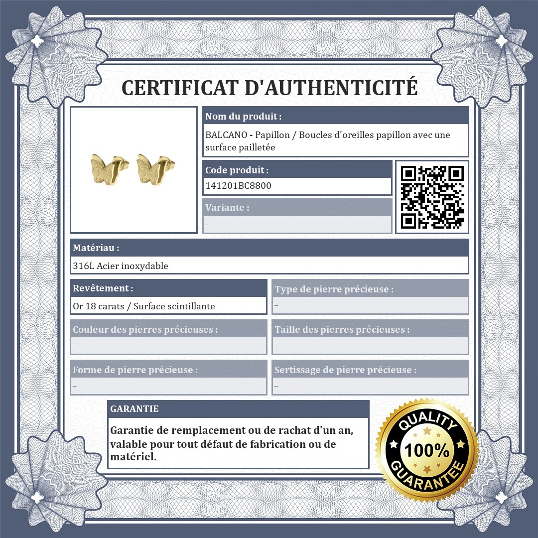 | Revêtement: | Or 18 carats / Surface scintillante |