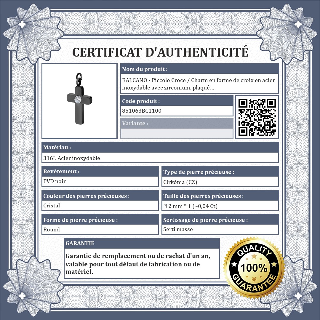 BALCANO - Piccolo Croce / Charm en forme de croix en acier inoxydable avec zirconium, plaqué PVD noir
