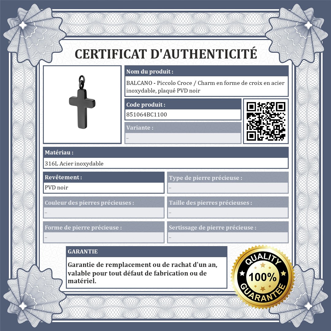BALCANO - Piccolo Croce / Charm en forme de croix en acier inoxydable, plaqué PVD noir