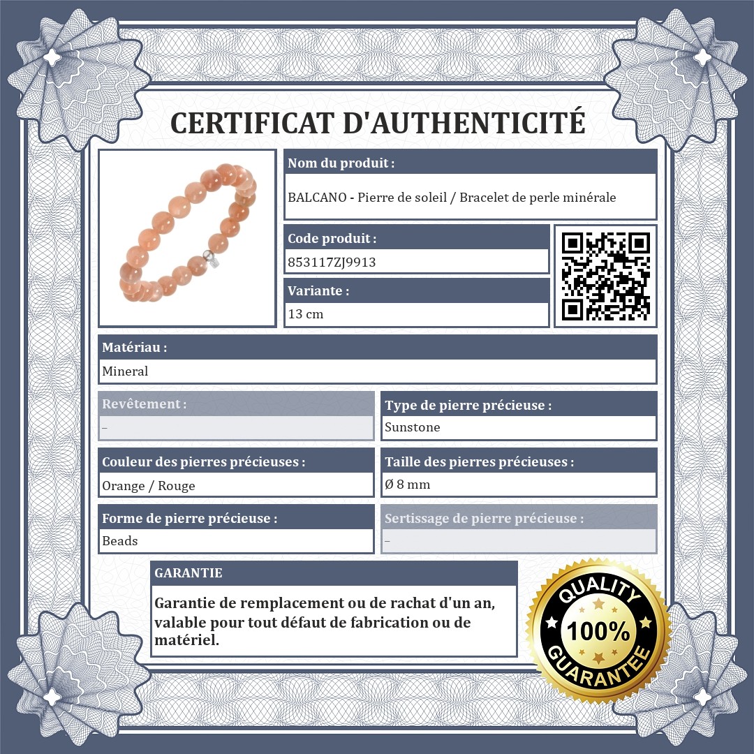 BALCANO - Pierre de soleil / Bracelet de perle minérale