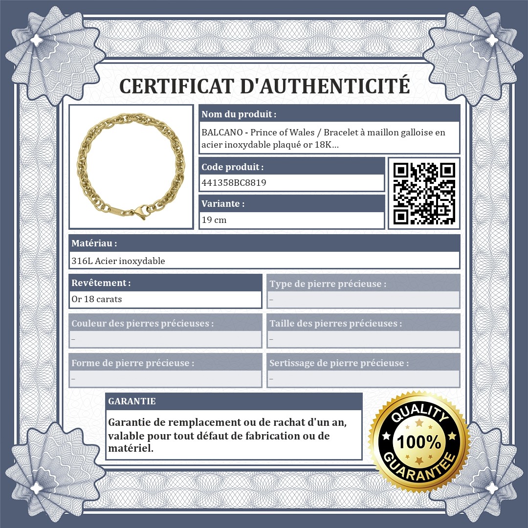 BALCANO - Prince of Wales / Bracelet à maillon galloise en acier inoxydable plaqué or 18K - 6 mm