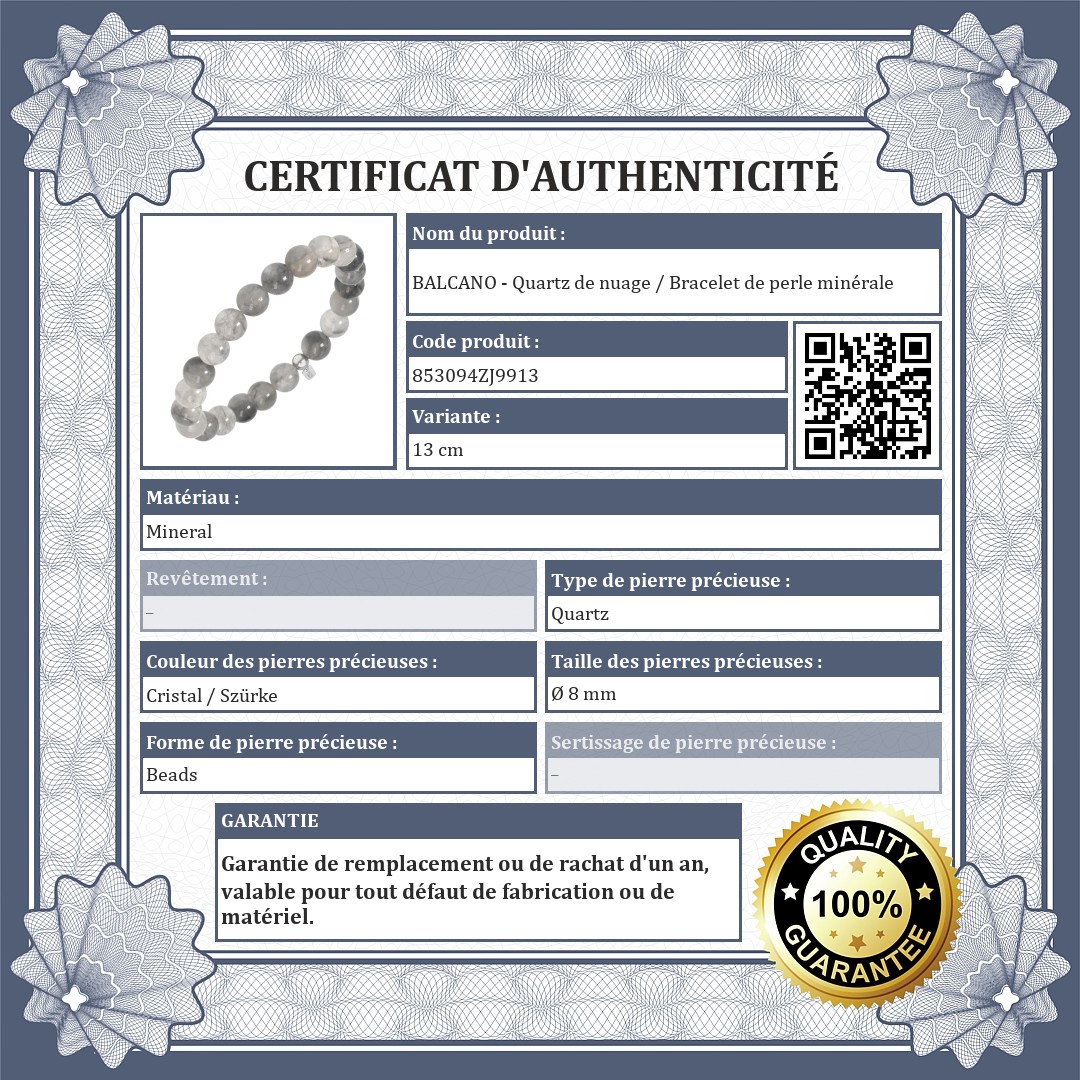 L'authenticité des pierres précieuses est certifiée par un certificat de qualité officiel.