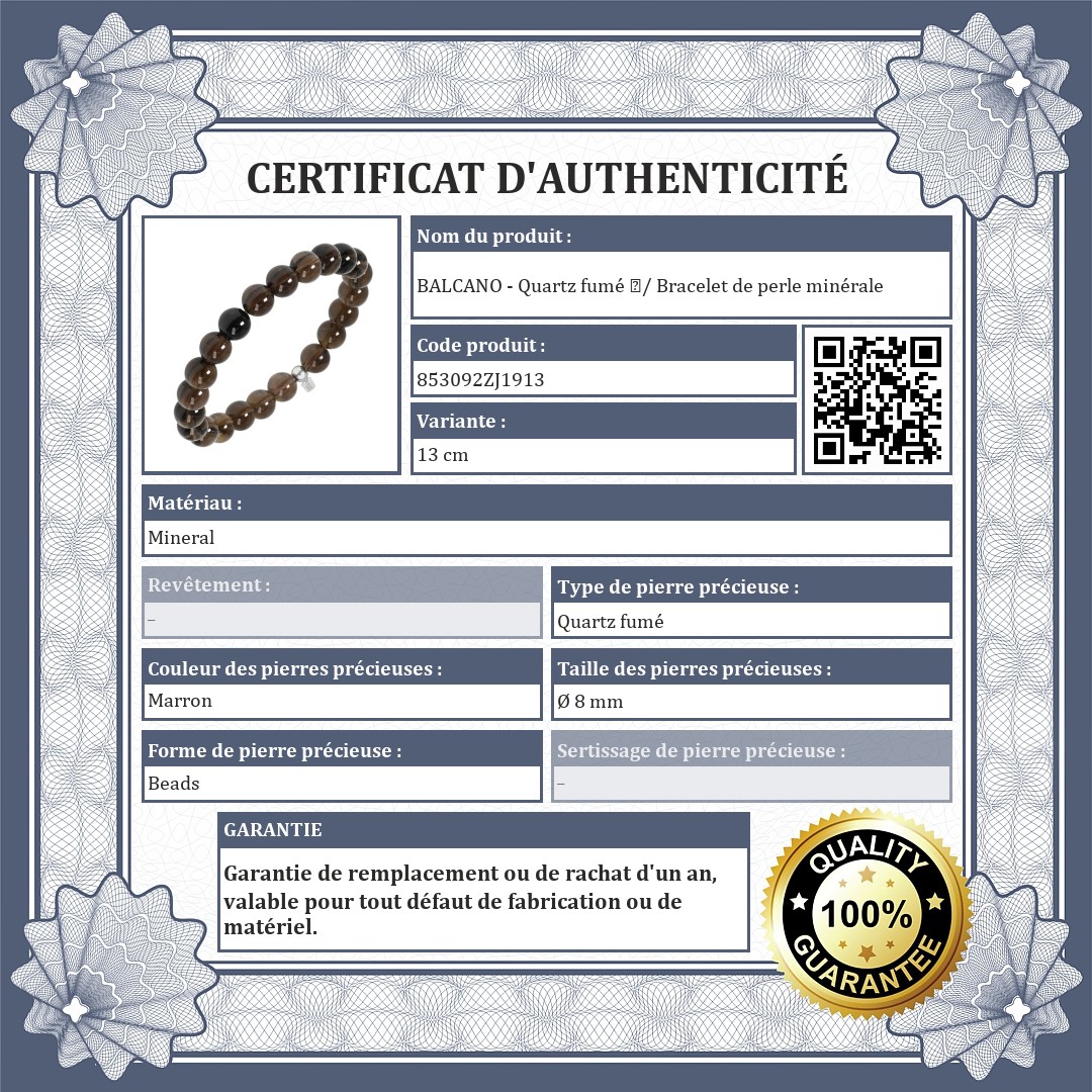 BALCANO - Quartz fumé / Bracelet de perle minérale