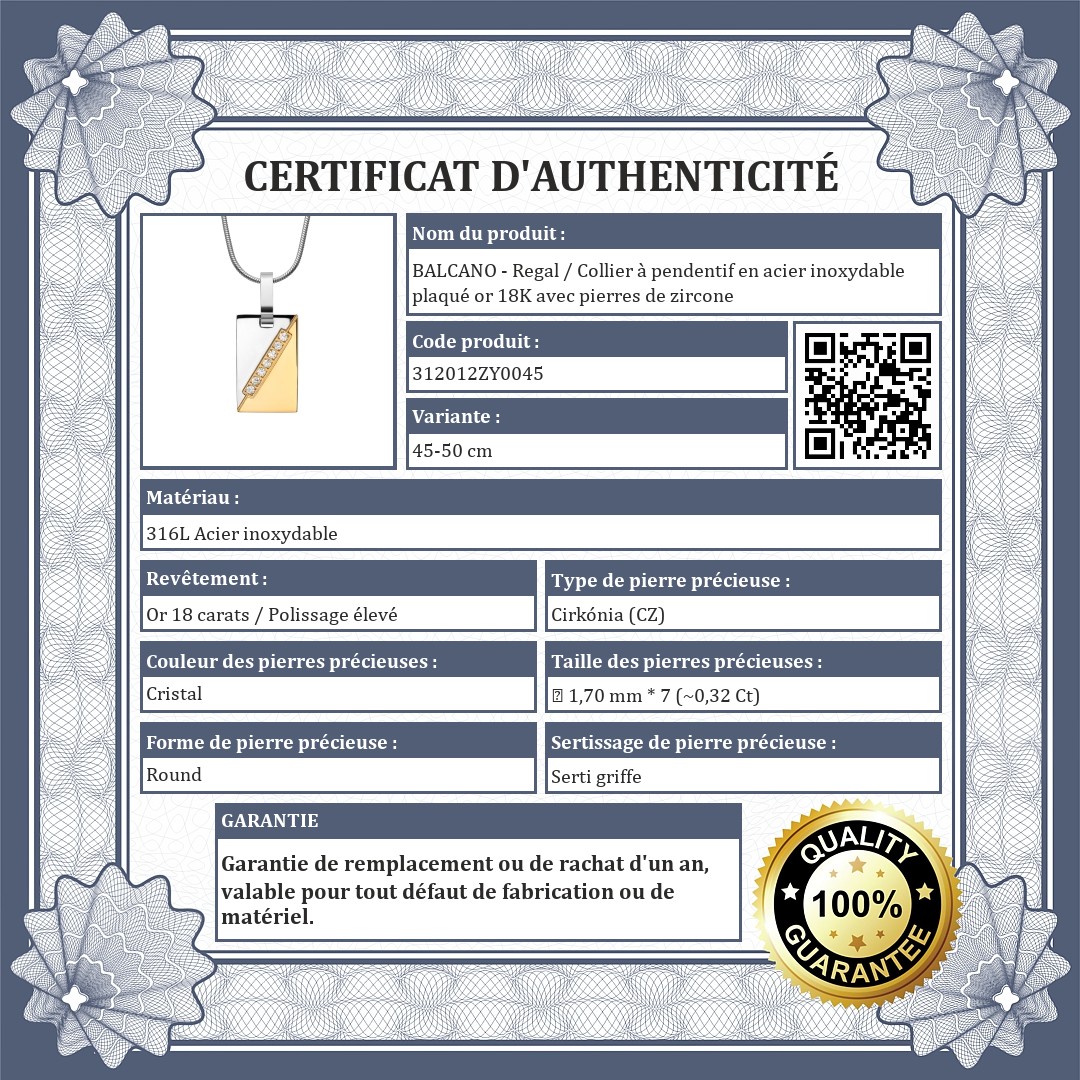 BALCANO - Regal / Collier à pendentif en acier inoxydable plaqué or 18K avec pierres de zircone