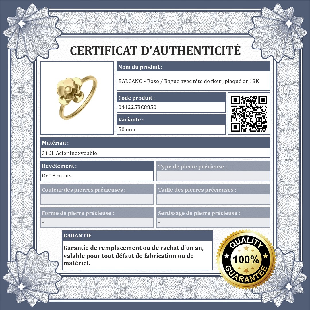 BALCANO - Rose / Bague avec tête de fleur, plaqué or 18K