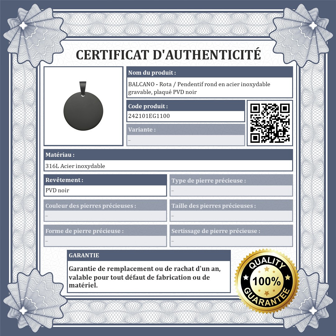 BALCANO - Rota / Pendentif rond en acier inoxydable gravable, plaqué PVD noir