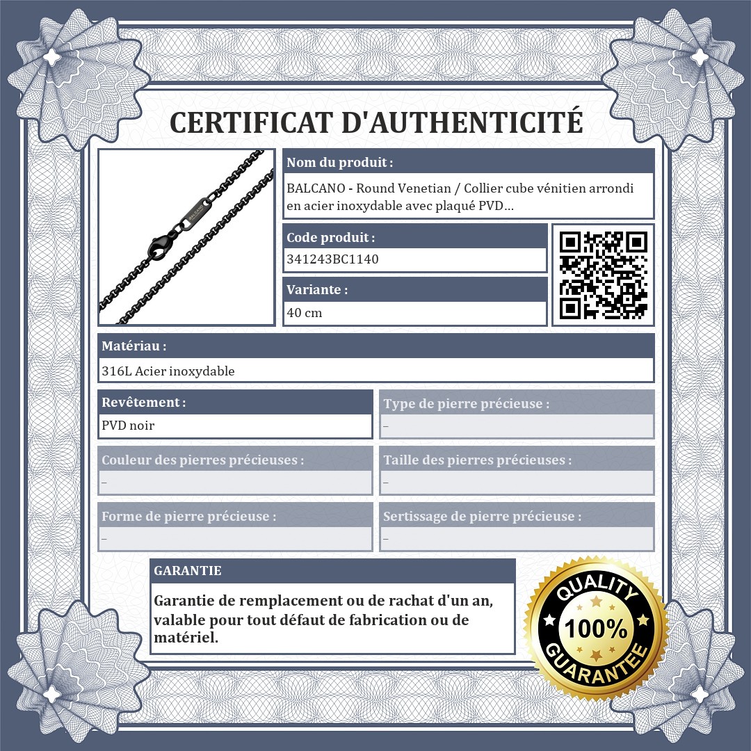 BALCANO - Round Venetian / Collier cube vénitien arrondi en acier inoxydable avec plaqué PVD noir – 2 mm