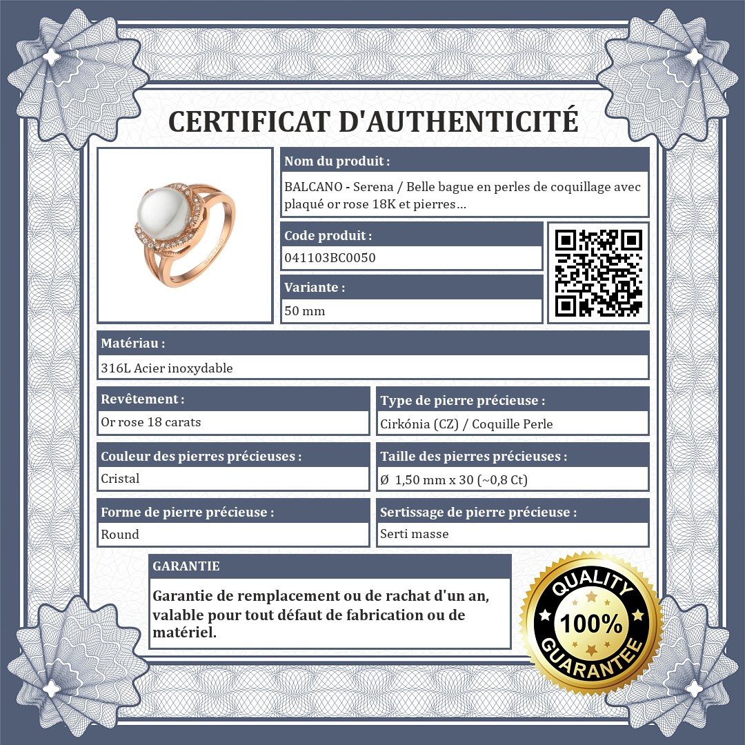 BALCANO - Serena / Belle bague en perles de coquillage avec plaqué or rose 18K et pierres précieuses zirconium