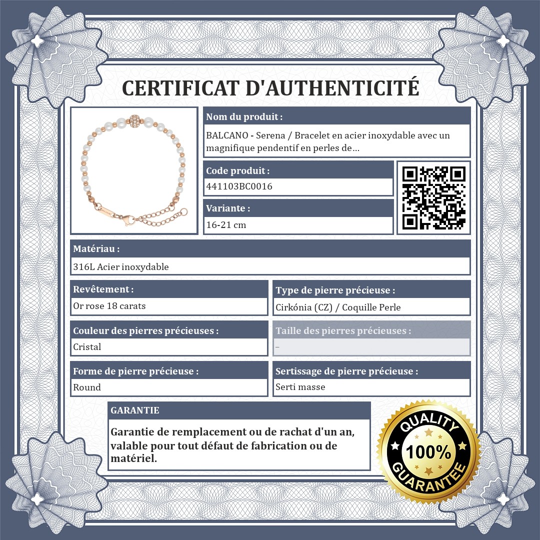 BALCANO - Serena / Bracelet en acier inoxydable avec un magnifique pendentif en perles de coquillage plaqué or rose 18K