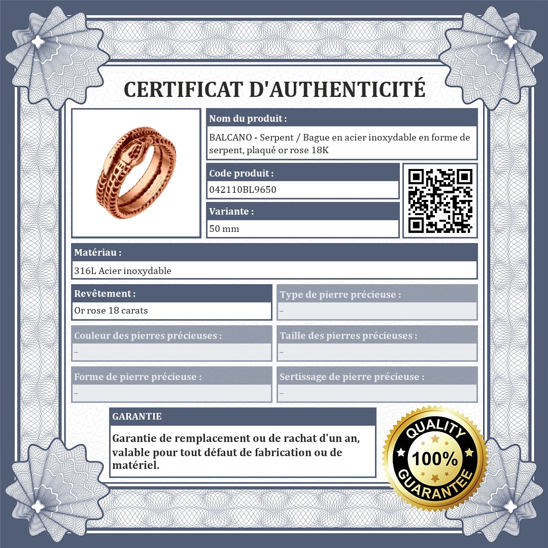 BALCANO - Serpent / Bague en acier inoxydable en forme de serpent, plaqué or rose 18K