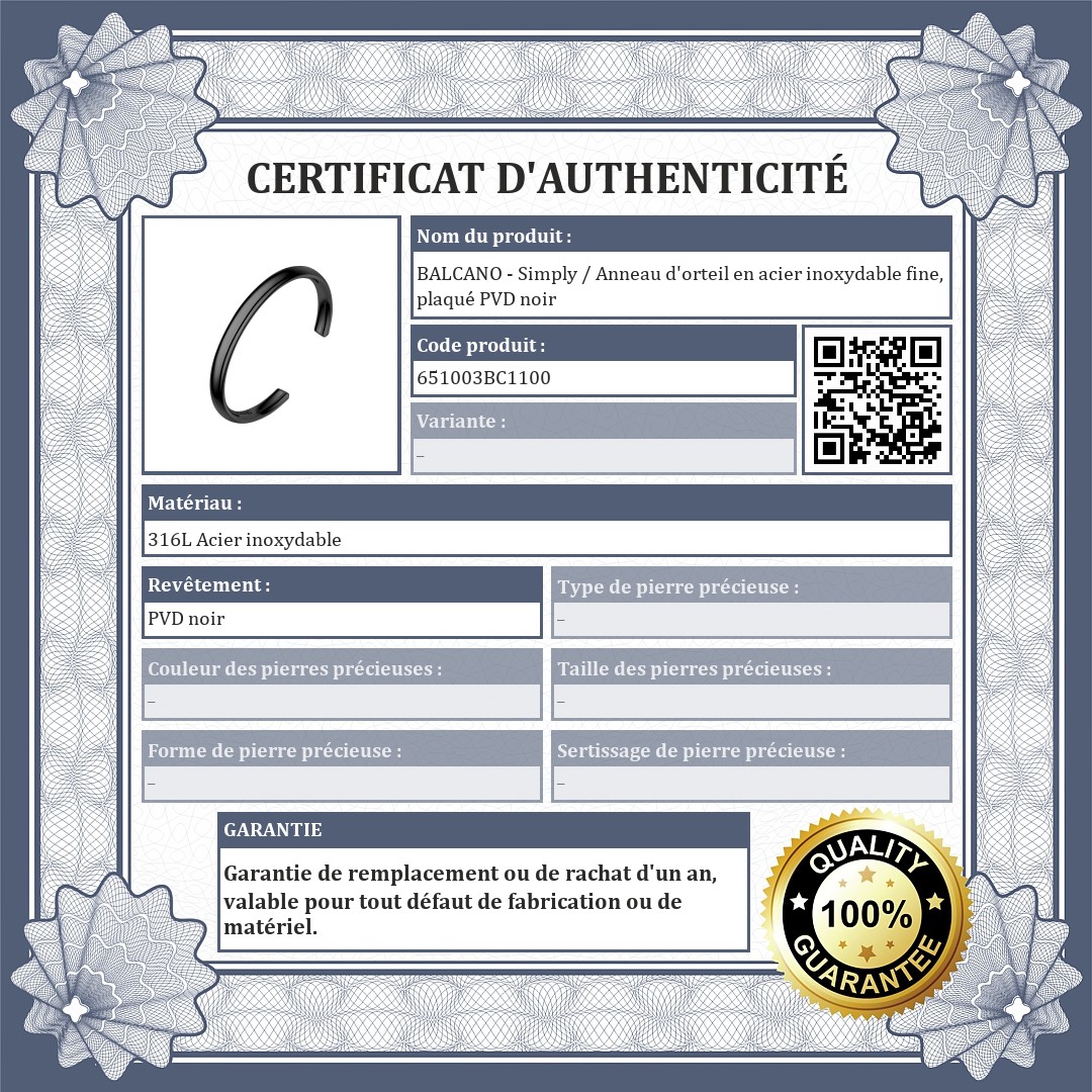 BALCANO - Simply / Anneau d'orteil en acier inoxydable fine, plaqué PVD noir