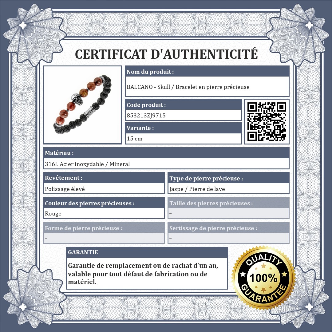 | Type de pierre précieuse: | Jaspe / Pierre de lave |