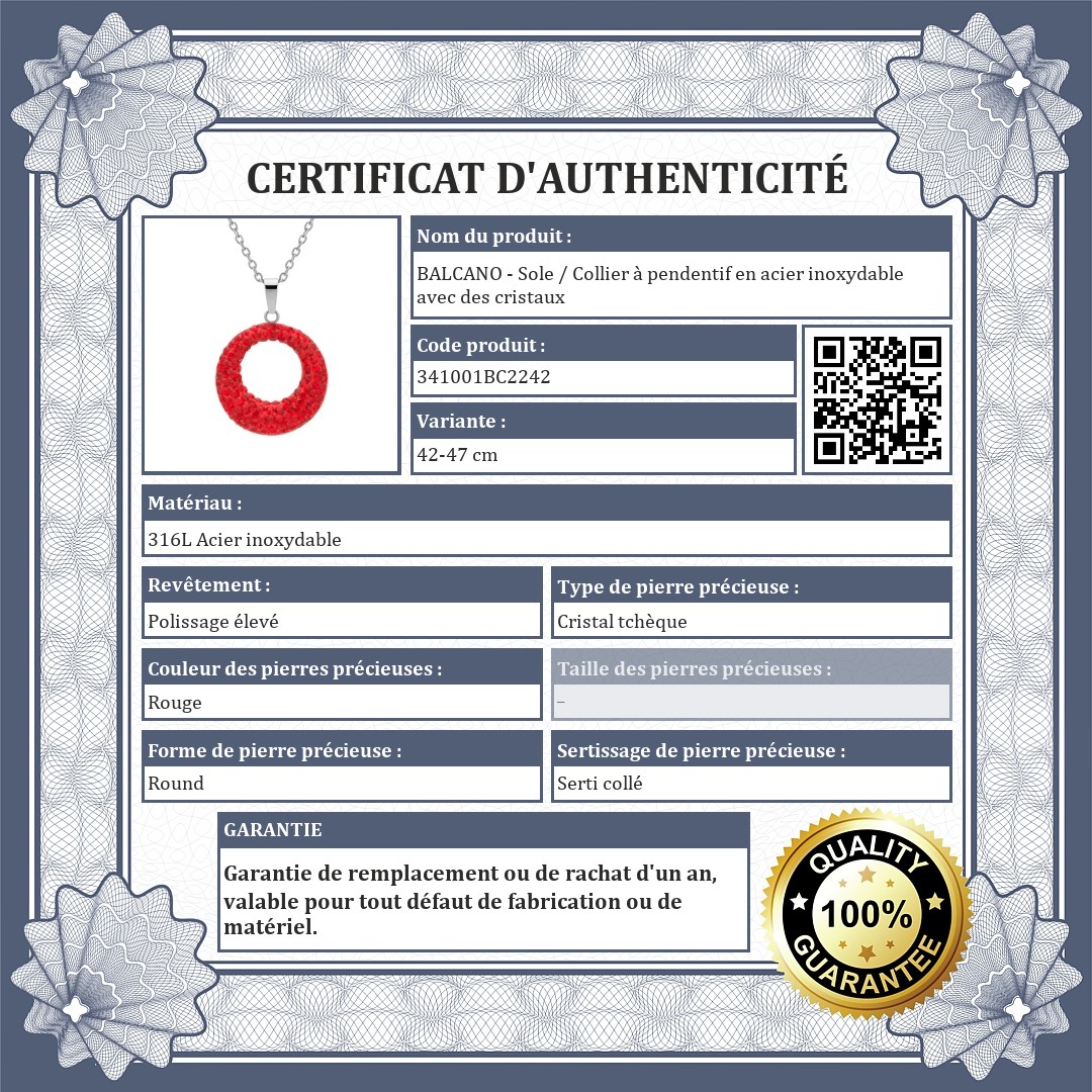 Chaîne d'ancre à œil plat de taille réglable avec pendentif rond serti de cristaux tchèques rouges. Bijoux en acier inoxydable de qualité médicale 316L, qui grâce à son matériau est extrêmement durable, qui ne s'use pas et ne se décolore pas.
