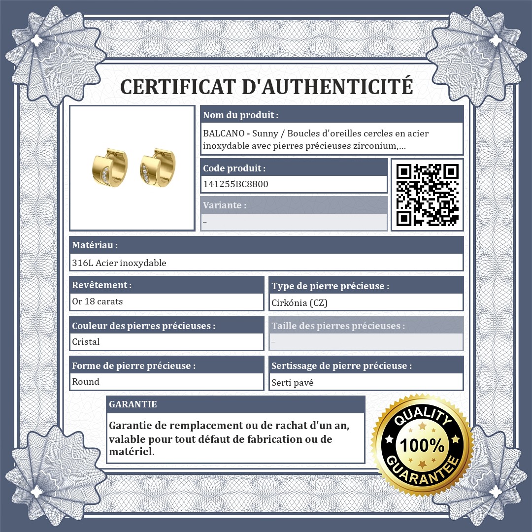 BALCANO - Sunny / Boucles d'oreilles cercles en acier inoxydable avec pierres précieuses zirconium, plaqué or 18K
