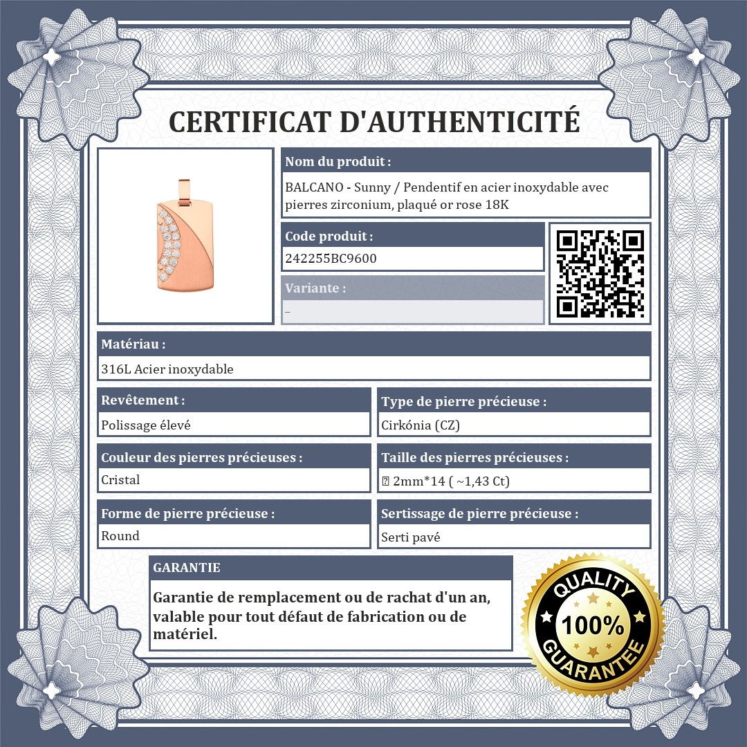 BALCANO - Sunny / Pendentif en acier inoxydable avec pierres zirconium, plaqué or rose 18K