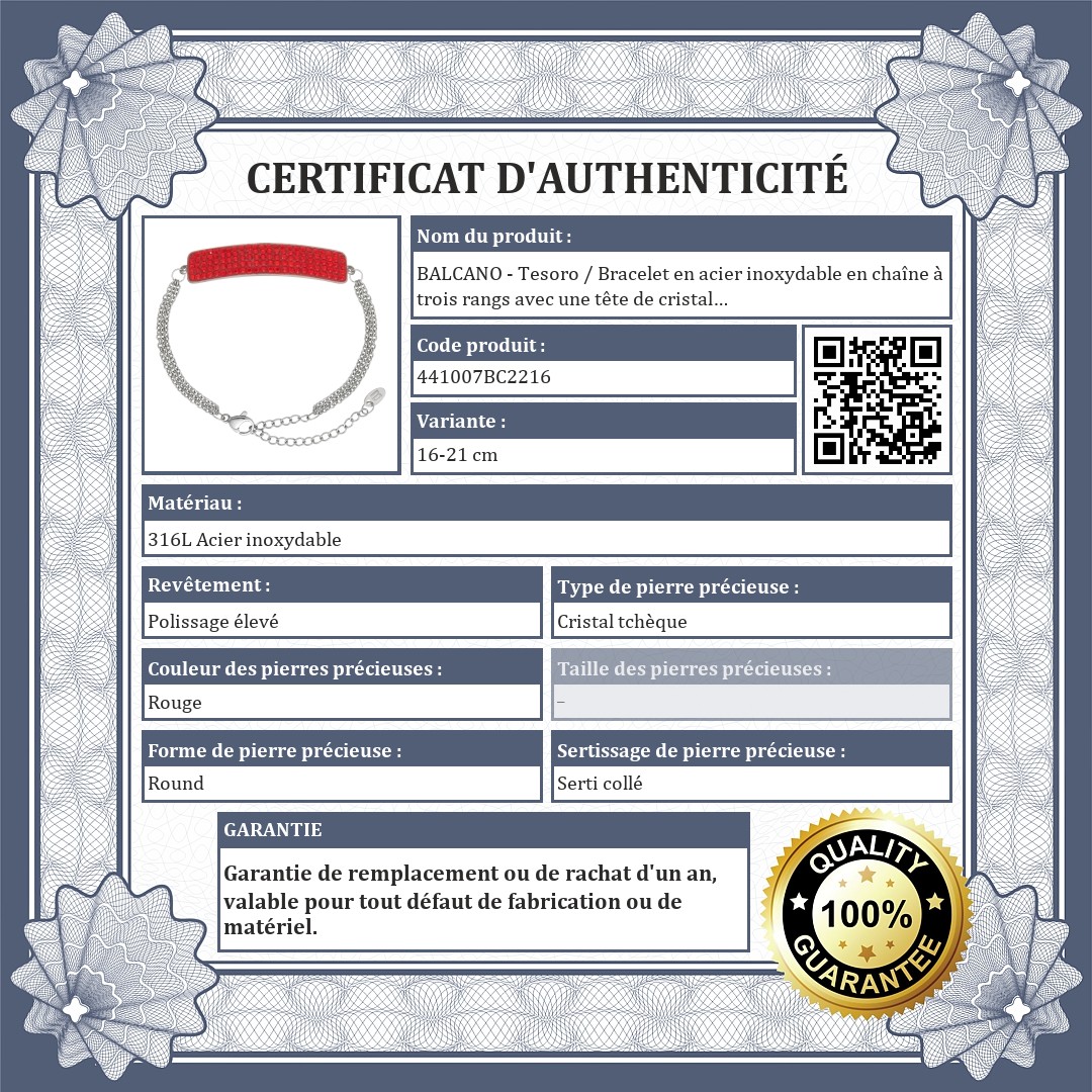 Bijoux antiallergiques, en acier inoxydable 316L, avec hautement polie. Bracelet à fermoir dauphin de taille réglable, composé de trois rangées de chaînes d'ancre aplaties. Une coiffe courbée à la mode, sertie de cristaux tchèques rouges clairs très étincelants.