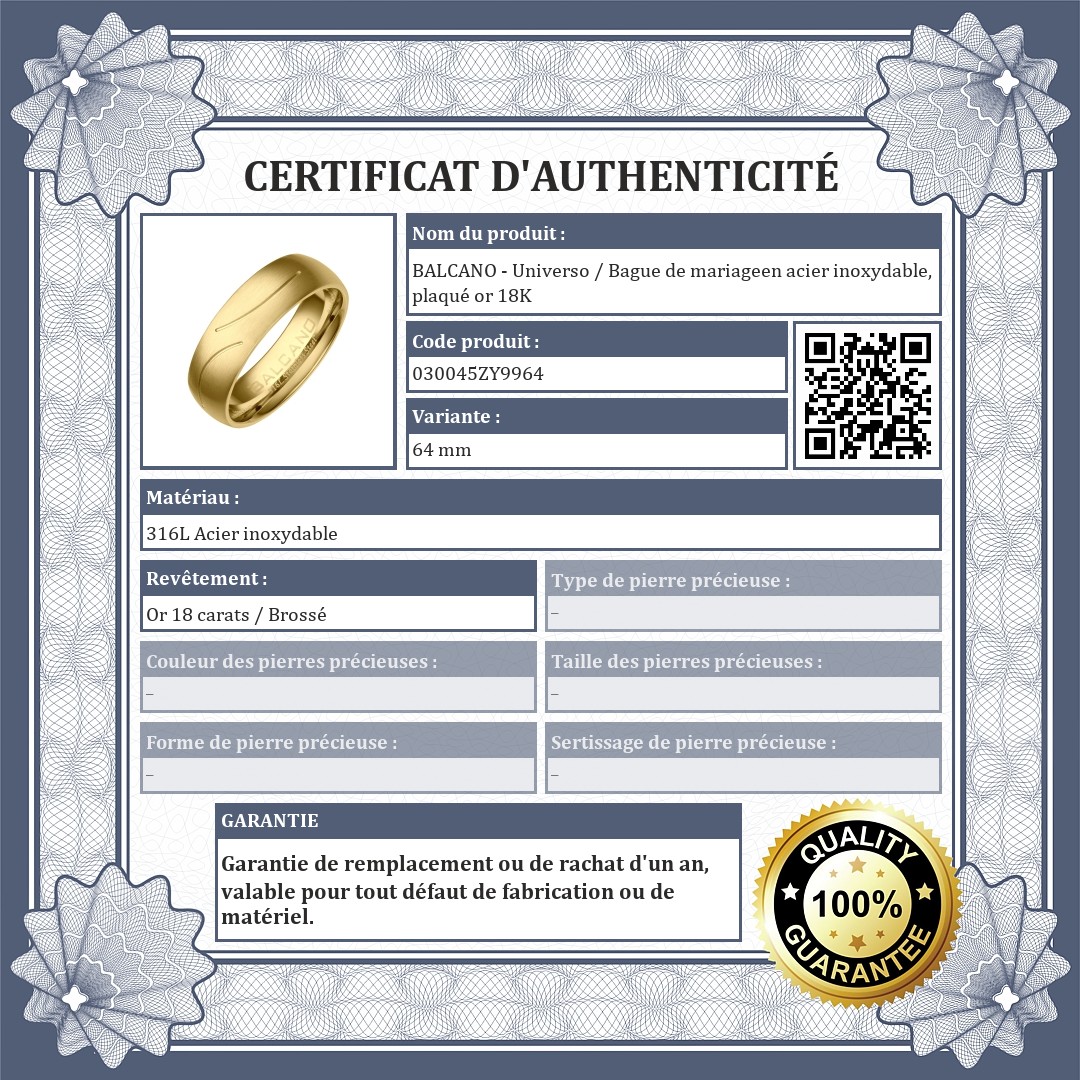 BALCANO - Universo / Bague de mariageen acier inoxydable, plaqué or 18K