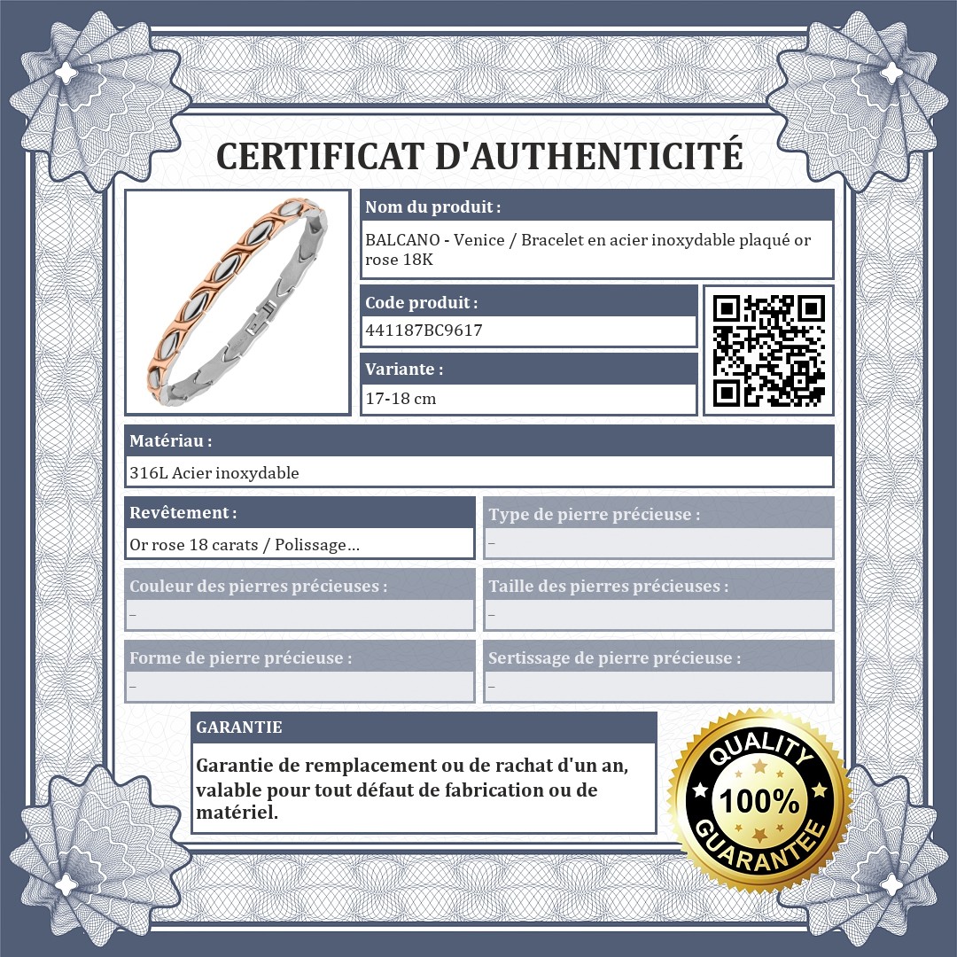 BALCANO - Venice / Bracelet en acier inoxydable plaqué or rose 18K