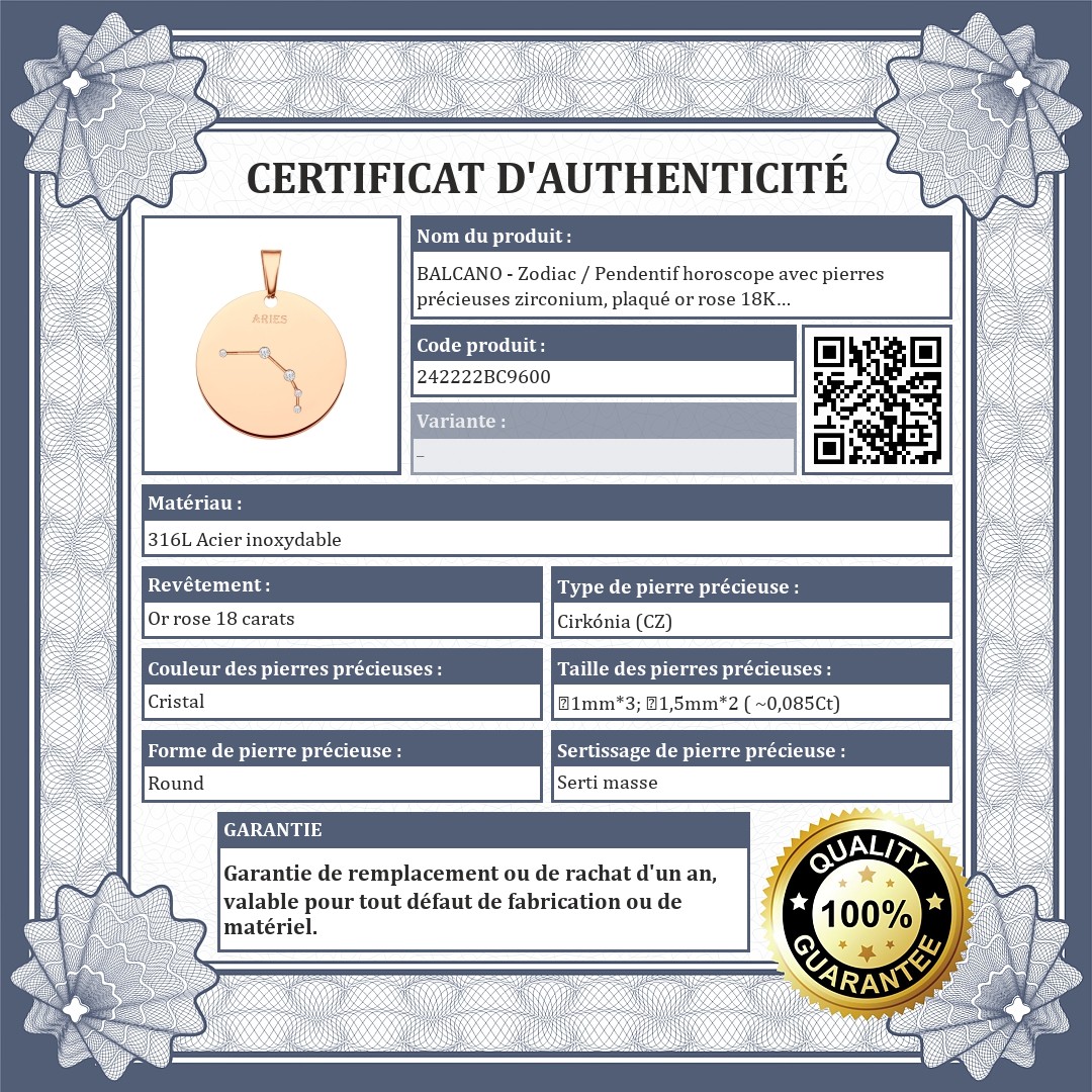 BALCANO - Zodiac / Pendentif horoscope avec pierres précieuses zirconium, plaqué or rose 18K - Bélier