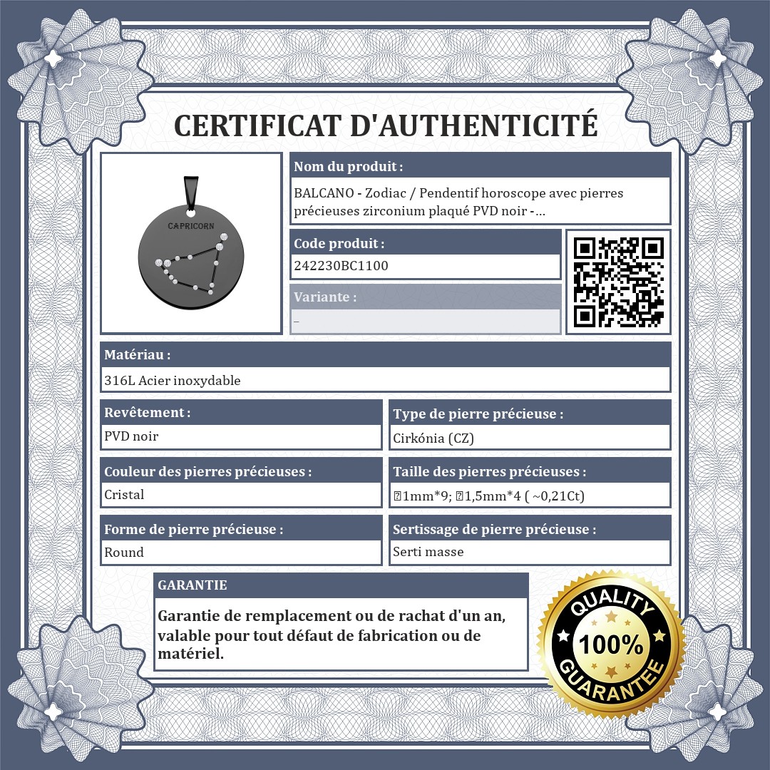 BALCANO - Zodiac / Pendentif horoscope avec pierres précieuses zirconium plaqué PVD noir - Capricorne