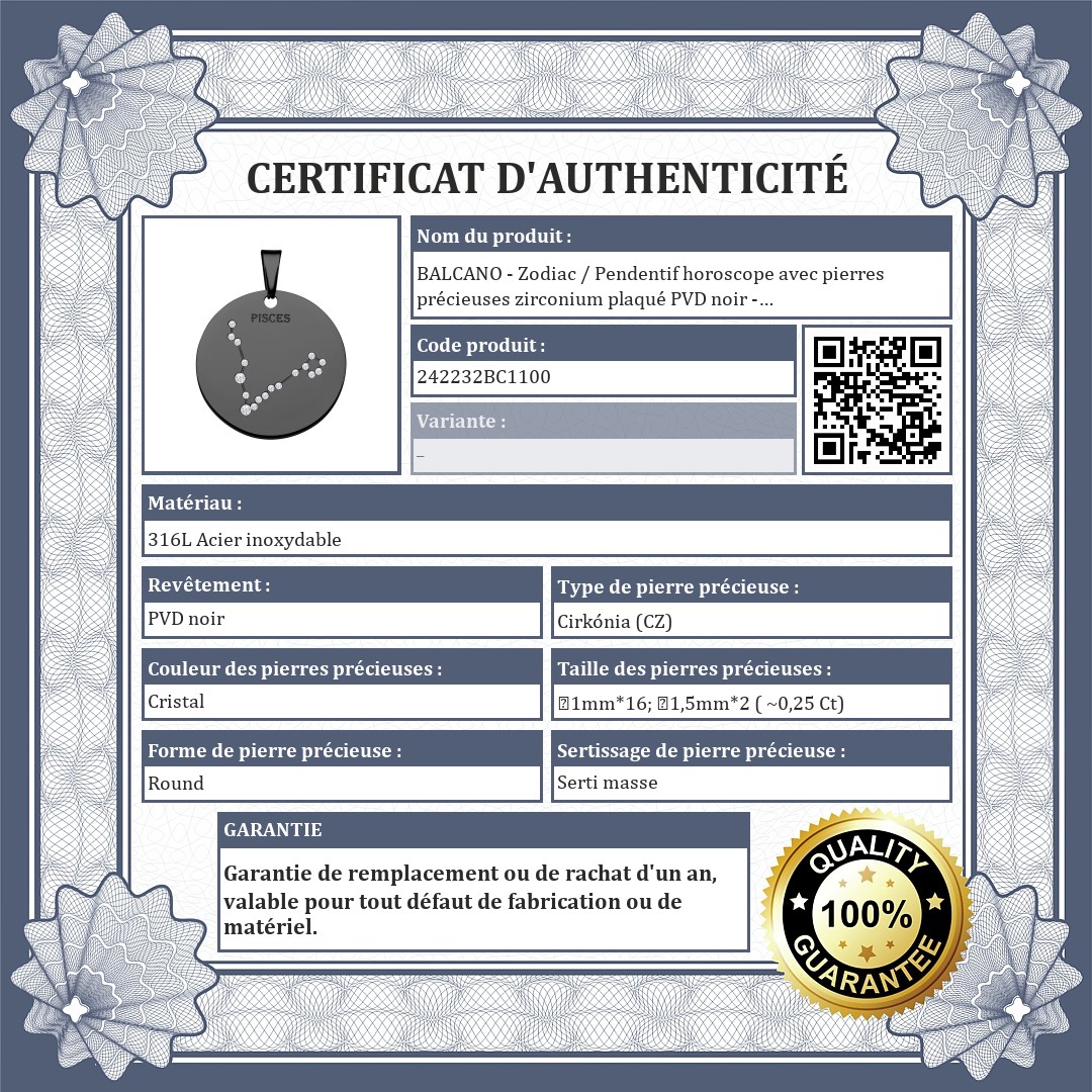 BALCANO - Zodiac / Pendentif horoscope avec pierres précieuses zirconium plaqué PVD noir - Poissons