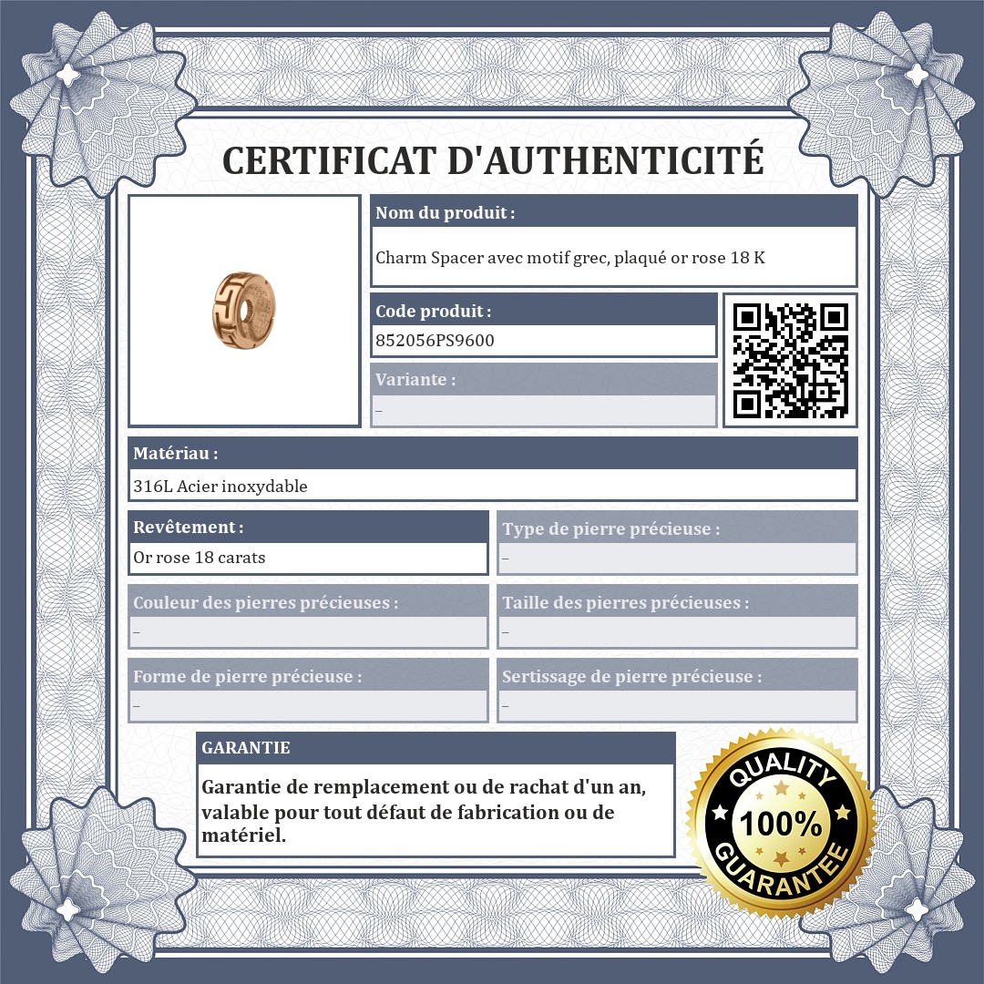 Charm Spacer avec motif grec, plaqué or rose 18 K
