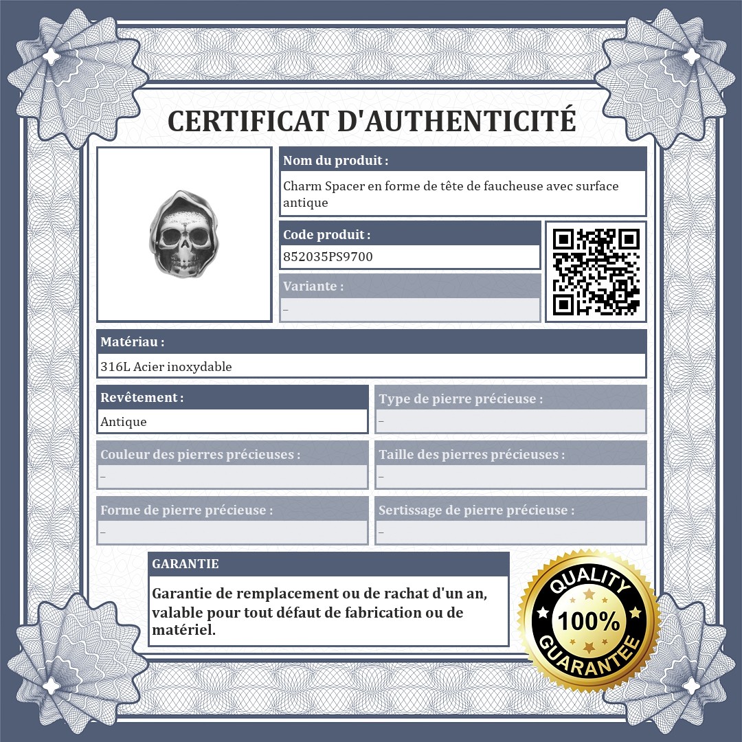 Charm Spacer en forme de tête de faucheuse. Accessoire en acier inoxydable de qualité médicale 316L, avec une finition spéciale antiquaire. Les spacers permettent d'éviter que les charms et les perles ne glissent de votre bracelet.
