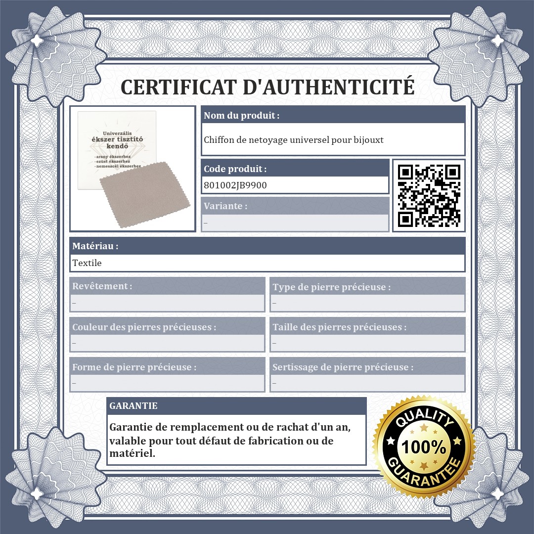 Chiffon de nettoyage spécial bijoux pour les bijoux en or, en argent et en acier inoxydable.