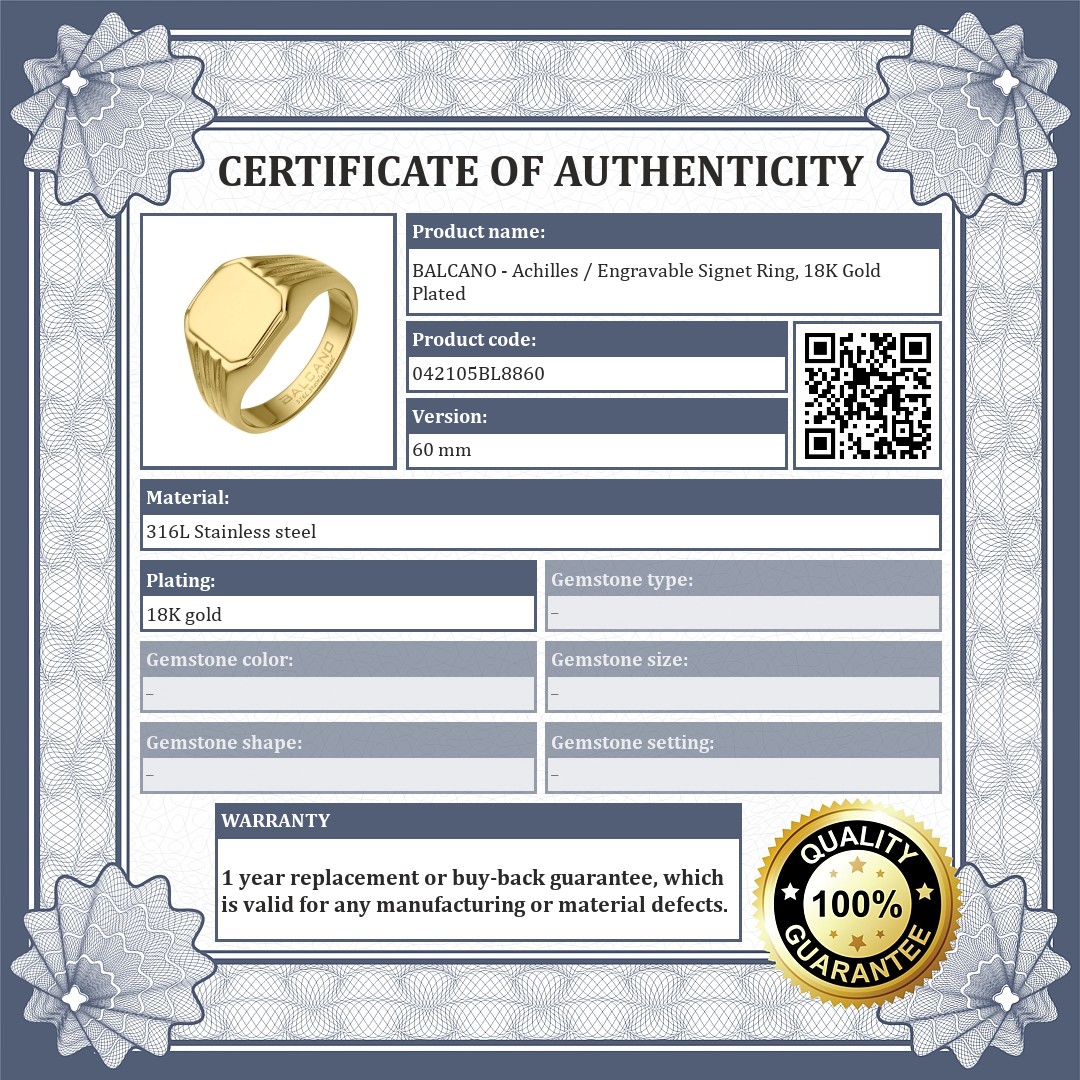 BALCANO - Achilles / Engravable Signet Ring, 18K Gold Plated